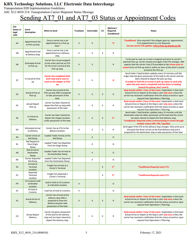 View EDI 214 AT7 Appointment and Status Codes for Van / Truckload / LTL